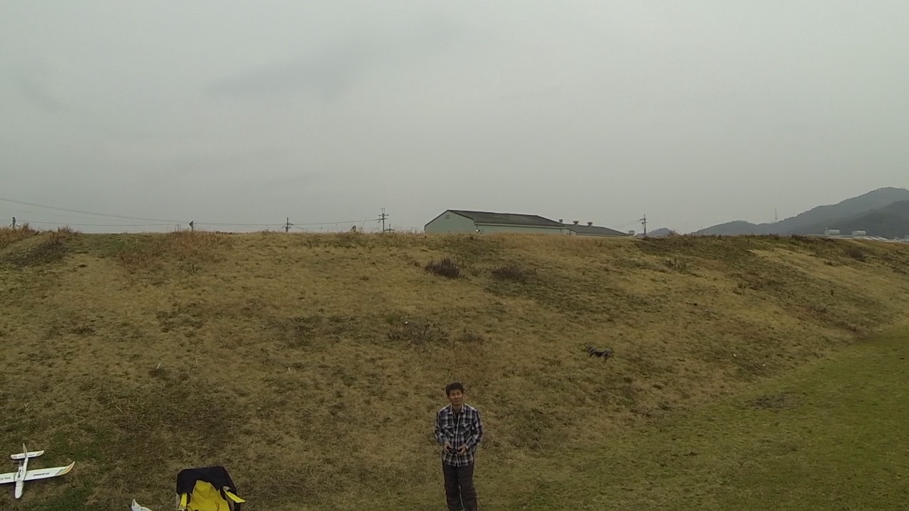 曇り空と、あまりの小ささのHubsan、ほとんどかくれんぼ状態(笑)