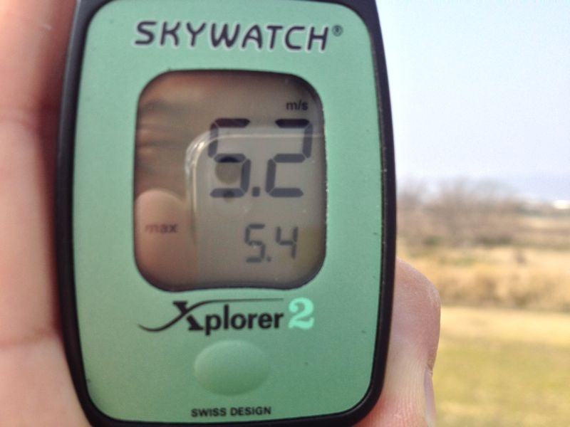 快晴かとおもいきや、かなりの春霞。風もそこそこにあり、フライトを満喫、とまではいきませんでした。今日は昨日より高度を上げてみましたが、霞の中でB2はかなり見難い状態。太陽光の散乱もあり、かなり緊張します。途中、機体方向がわからなくなったのですが、大きく舵を打てば機体が見えたのでなんとかリカバーできました。ジャイロの感度も調整しましたが、結構頑張っている印象。無風〜微風下ならいい感じじゃないかなぁ…と思いました。風はこんな感じ。いつもの北風です(^^;;