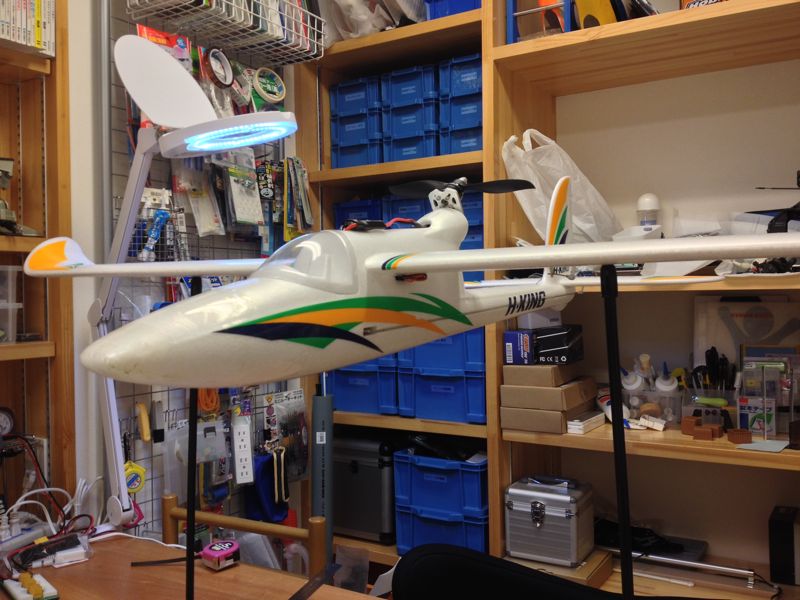 昨日のうちにB2の重心出しをしてみましたが、バッテリの位置で調整できたのでよしとし、GPSロガーも出てきたので積んでみました。重心位置は指示通りのポイント(ノーズから約350mm)におきました。