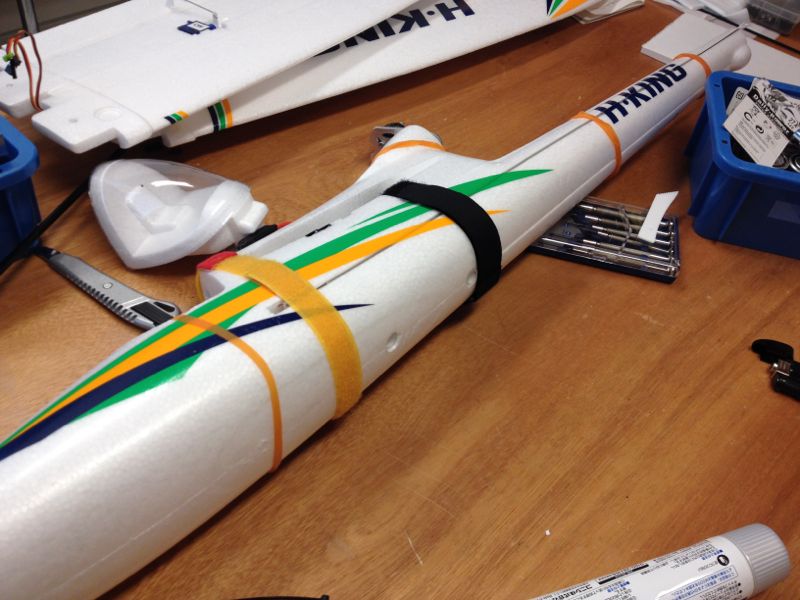 とりあえず初号機のみ3Fして帰りましたが、ラストどうも変な異音が…。すぐに落ちそうな感じの音じゃないのですが、ギヤ?フレーム?あまり聞いたことのないような音です。また点検と増し締めですか…orzB2は臓物を収め、二枚開きだった胴体を接着。今回はサイレックスを使ってみました。まだやってませんが、ノーズ部分の補強は硬いほうが良さそうなのでアラルダイトかな?