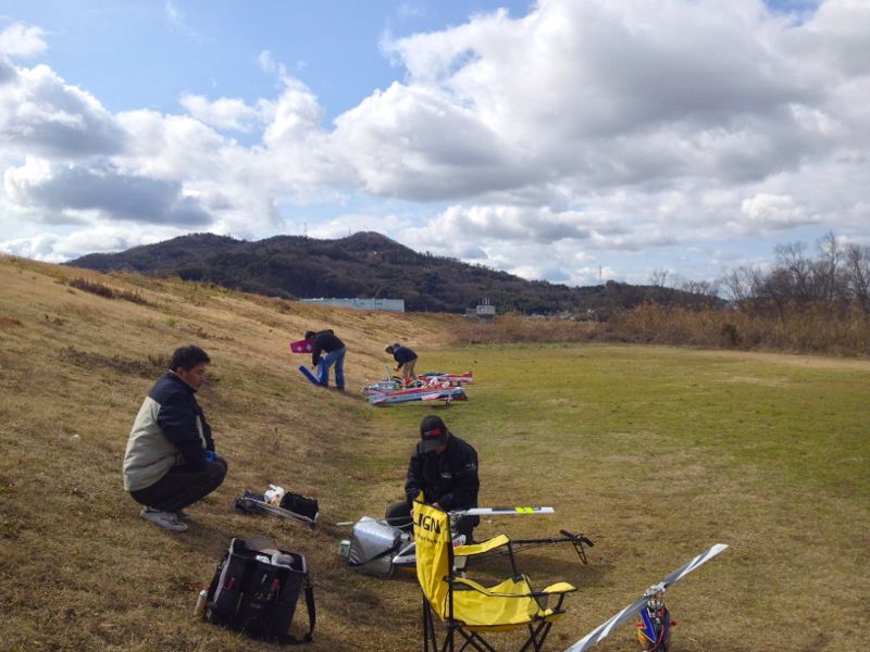 立春を過ぎた頃が一番寒くなるわけですが、ご多分にもれず飛行場では寒風が吹きすさんでいました。天気は曇ったり腫れたり。日差しがあっても寒すぎます…。そんな中、奇特な方たちが5名ほど。偵察がてらの方も1名ほど(^^;;