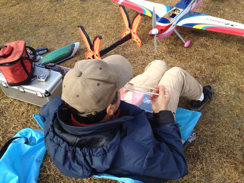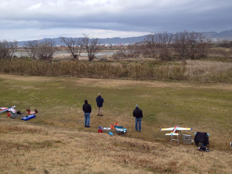 昨日の晩から今朝方にかけ雨、午前中もどんよりとしたにわか雨舞う冬空の下、I店主、T口さん、おいやんの3人が仲良く飛行機を飛ばしていました。バッテリを変更したSTREAMも持って行きましたが、さすがにこの風邪ではちょっと無理でしょう、ということで僕は初号機1Fのみ。あとはDiscoProのダンパーを変更したので調整がてら1F。2時間弱の滞在中特にトラブル無し。来週はまた仕事です…orz