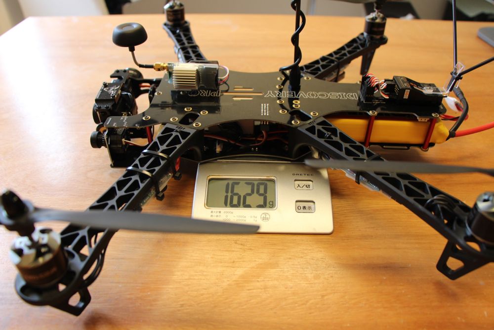 | フレーム:TBS Discovery Pro アーム:DJI F450 Frame arm モーター:RC TIMER 750KV ESC:TURNIGY MULTI STAR 30A プロペラ:TURNIGY Thin Style 10x5 CCW/CW バッテリ:4S 3700-4000mAh (RHINO/ZIPPY K) FC:DJI NAZA-M V1(V2) 受信機:FrSKY TFR8 SB |