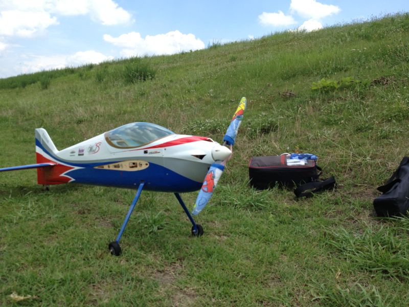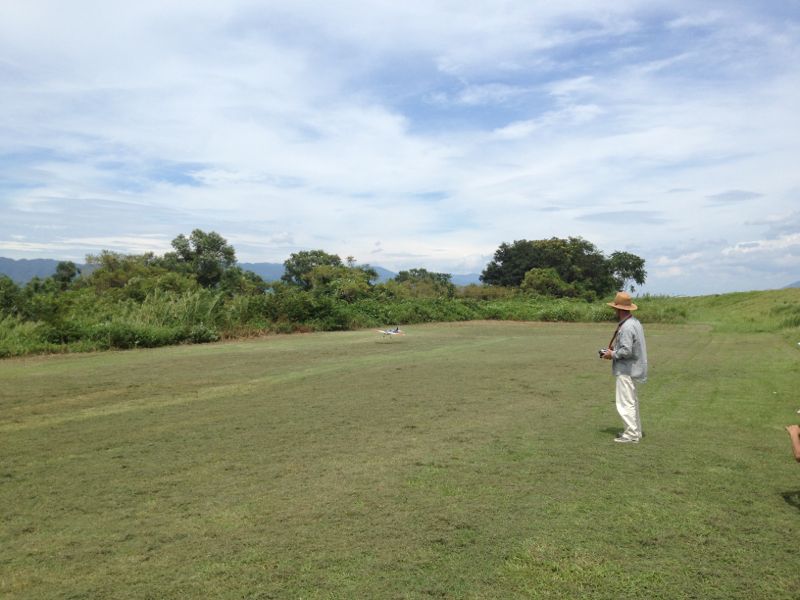 フライトではT口さんのVANQUISHがモーターマウント脱落で軟着陸。被害は全然無さそうなので来週にも復活されることでしょう。I店主のスカディーも久々に見ました(^^)/ 最近は皆さん電動ばかりですが、そんな中、初号機も飛ばしました。暑いらしく、一発目はガッタガタ。エンジンがダルすぎてレスポンスも最悪。メイン・中速ニードルを3コマ程度絞って良い感じに。 中華Discoも飛ばしました。おいやんに協力していただき、上空から【カメラの下方をロールしながら通過】というシーンを撮ろうと目論んだのですが、どうもうまくいきません。DISCOの位置とKATANAの通過場所が随分違うようです。目測ではかなり難しく感じました…orz