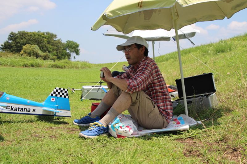 季節の変わり目と思しきお天気ですが、飛行場は快晴。昨日よりマシとはいえ、風はやや強めで皆さん苦戦。日曜日にしては珍しく総勢5名。本日のメニューは中華DISCOと初号機。