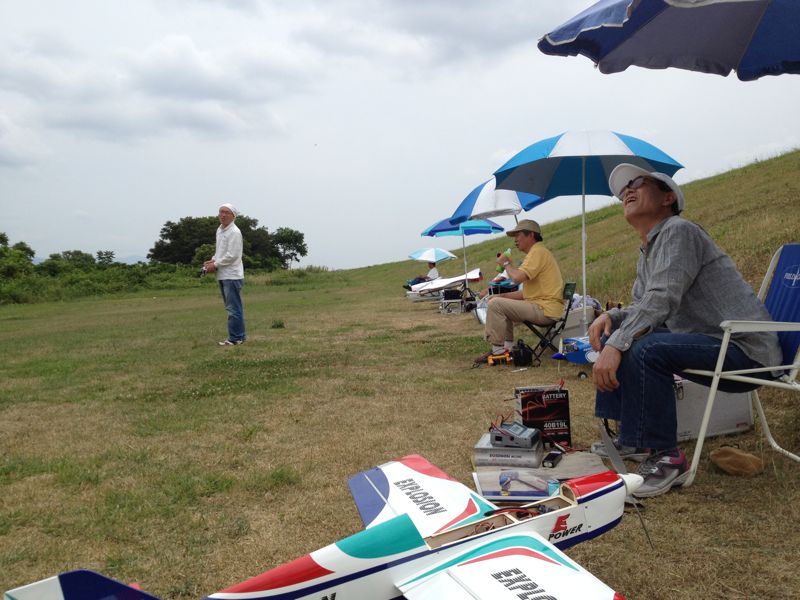 いかにも梅雨空の飛行場で初号機・弐号機ともに2Fずつ。空梅雨なのか草丈の伸びが意外に悪いのですが、気温も高くて湿度もあるのか、ニードルはやや絞りこまないといけませんでした。開けた状態だとダルくてダルくて…。