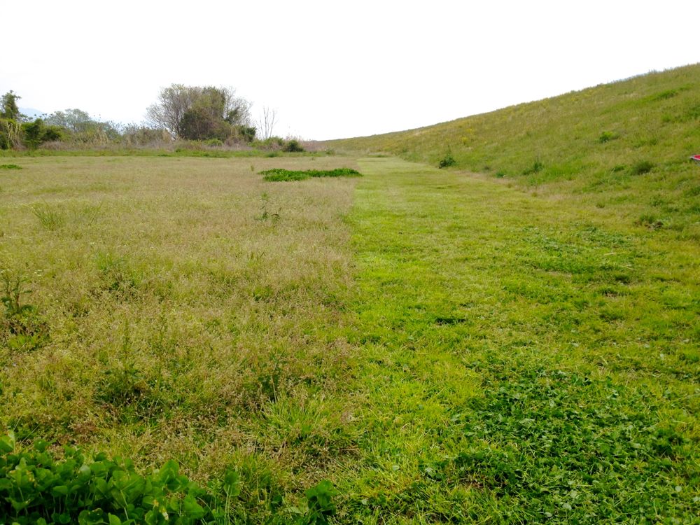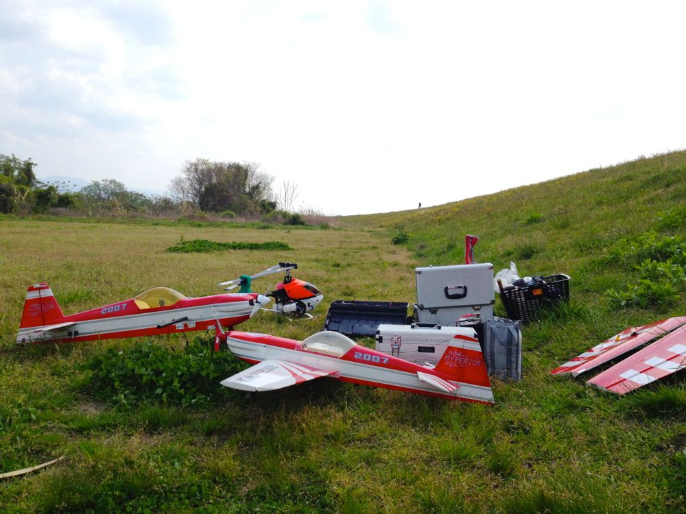 とりあえず飛行場の草刈りが終わったと思ったら、I店主がいつもどおりサービスカットを発動。飛行場両端の拡張工事に入りました。石や空き缶、太めの木や草などを取り除き草刈機で刈っていきました。ちょっと広がった飛行場、なかなかいい感じ。…ところが今日は強風のためか、この【広がった】飛行場で4機も墜落…。