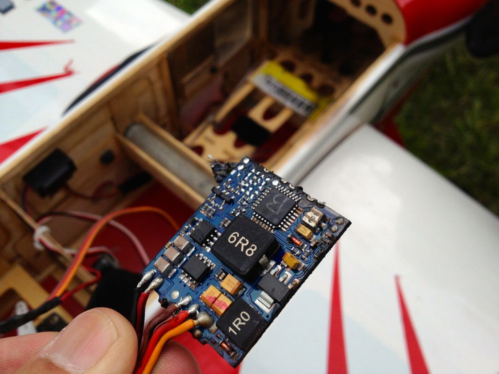 おいやん:良い感じで飛んでいた電動機、CAP232のアンプからGPのごとく発煙し墜落。