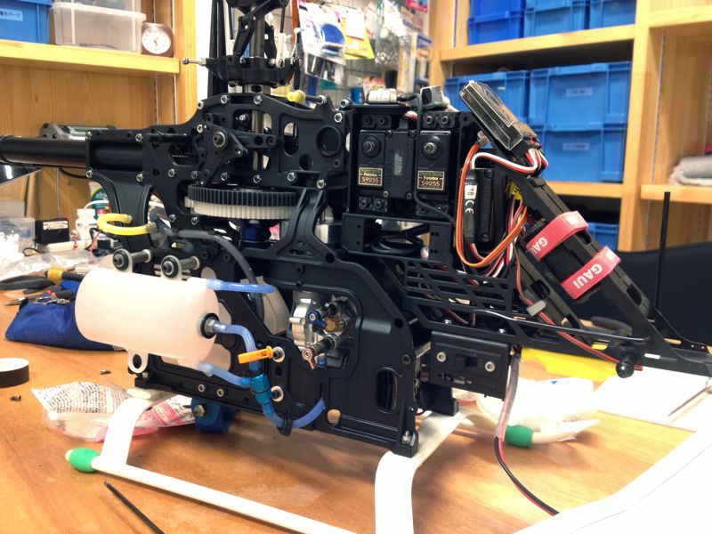 初号機はボチボチと修復を進め、やっとここまで来ました。あとはリンケージぐらいかな?キャビンは以前のPPキャビンに戻して様子見ます(笑) 墜落の原因となったタイミングベルトは新品に交換し、ついでにラダーサーボをBLS251へ。併せてCGY750のタイミング設定も760μsへ変更。テールはプーリーとシャフト他をGパーツに交換。ガタは激減しましたが、それにしてもHIROBO純正とはいえ高級品。シャフトだけでも3000円近いというのは…ま、さすがにこれは曲がらないとは思いますが(笑)