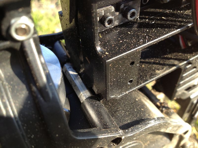斜め前から突っ込んだらしく、サーボマウントがフレーム付け根部分から外れてしまっています。スイッチもこの時に切れたようで、バッテリは大丈夫でした。キャビンは…もう使えません(T_T)