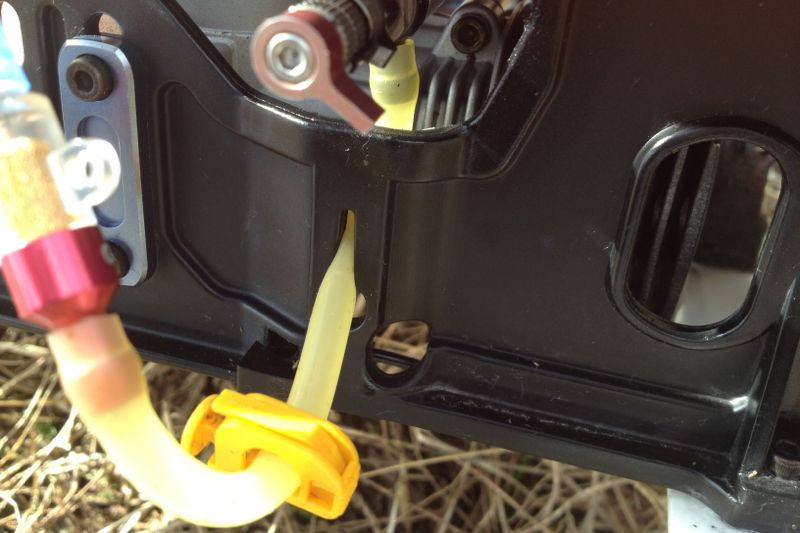 結構北風が強く、寒かったのですが太陽が出れば背中は暖か。弐号機のエンジンがどうもリーン気味で、ニードルを開けようとしたところシリコンチューブのストッパーが半開きだったことが判明。ちゃんと開放すればエンジンも元の調子に戻りました(^^;;半開きのチューブ。これでもエンジンが掛かってしまうところが…(笑)
