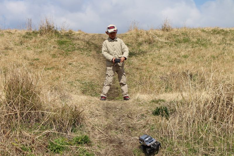 朝から飛行場へ思いたのですが、息子が連れて行って欲しいというので同伴して飛行場へ。クルマのトイラジを持って遊ばせましたが、動きが突拍子無くまだまだ怖かったです。飛行場の皆さん申し訳ありませんでしたm(__)m