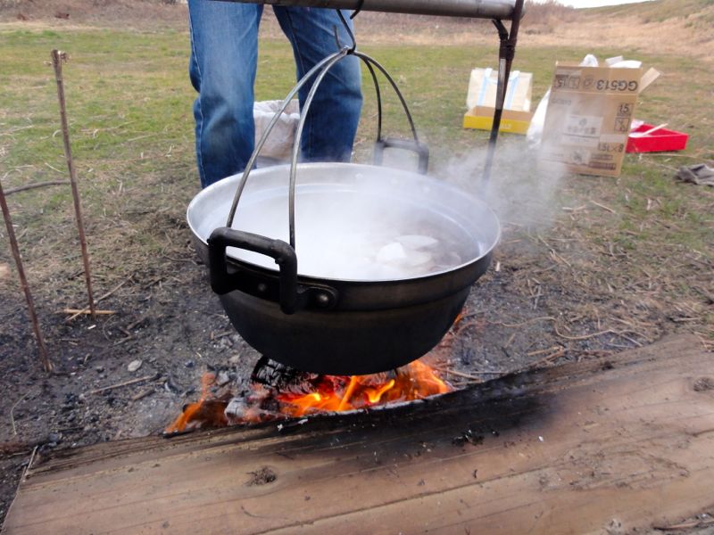 昨夜は深夜まで同僚の自宅で飲み会、その後二日酔いを覚ましつつ飛行場へ。ちょうど料理長はじめ皆さんが鍋を火にかけたところでした。今日はなんせ寒い、の一言です。お天気はまずまずなのですが風が強く常時6-7m/sec、強くなると10m/sec程度に。地表でこれですから上空はもっと強いはずです。