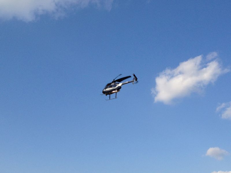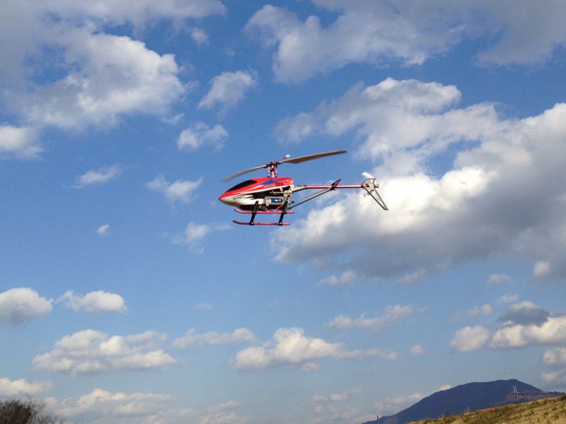 I元さんはNineEagleのSoloProなんかを風が弱くなる頃を見計らってフライト。やはり固定ピッチは寒風吹きすさぶ中では厳しいようですね。SoloProのメインローター回転はだいたい2000rpmほど。テールローターは固定ピッチなので回転の上下動が激しく、はっきりわかりませんでしたが3500rpmくらいは回っている感じでした。