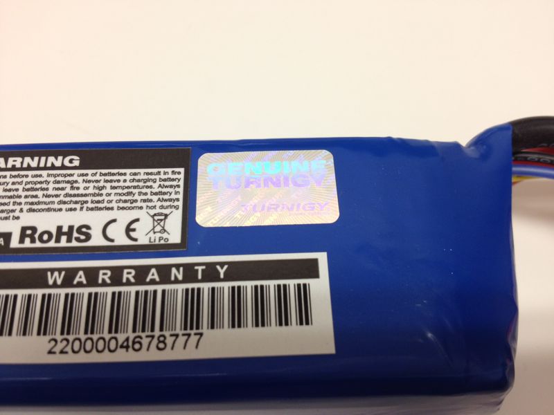 Turnigyのバッテリ。スペックはPhantom標準と同じものです。以前からホログラムシールあったかな?
