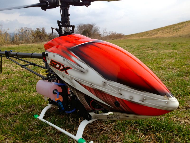 次に今年はじめてのBixler2。風があるので飛ばしにくいですが、翼長も相まって風に乗るとかなりのスピード。あらぬ方向へ行ってしまいそうになるのを頑張ってコントロール。フラップ付きなので着陸はぐっと楽になりましたが、気分よくとばそうと思ったらもう少しいい条件のほうがよさそうです(^^;;飛行場ラストはSDX。ベルトが少しゆるめだったので締め直してホバリング。ピッチやトラッキングもいい感じです。横風になびく排気がまた良い感じ (^^)/ 寒かったのでニードルを少し開けました。中速2コマ、メイン1コマ。どちらもほぼ2回転弱開いているのですが、15-18 NASAにはちょうどいい感じのニードルでした。排煙は多めですが、トルクフルです。特にチクタクで顕著。サイドでもいい感じに切り返すことができ、風にも負けない踏ん張りを見せてくれました。う〜ん、久しぶりにガスパワーを体感した気分(^^)/ 気分は上々です(^^♪