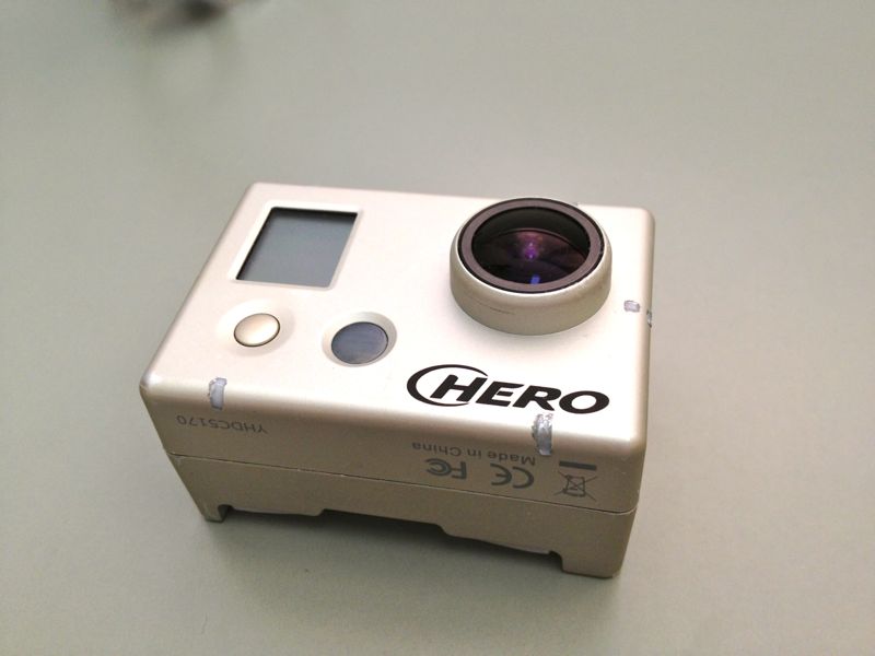 およそ一年も前に購入したまま放置していたGoProのレンズ交換をしました。今発売中のHERO3はセンサーも良くなってますし画角などもよく考えてあるようですからそのままでもいいんでしょうけど、無印HD HEROは720p 60fps撮影だと170°の超広角。空撮目的だとちょっと不自然な感じが否めません。1080pでもいいんですがスローが使えないなぁ…。そこでレンズをDSL355A-650-F2.8に交換し、画角を78°としてみました。気に入らなかったら元に戻せるのも魅力(^^;; Phantomならハウジングなしでも撮影出来ますが、ハウジングをつけたほうがいい感じだったのでハウジングもレンズに合うように変更しました。 飛ばしてみないとなんともいえませんが、地上で撮影している分にはなんの問題もないようです。望遠系に振っちゃうとブレもひどくなるのでその辺りも今後検討が必要です。