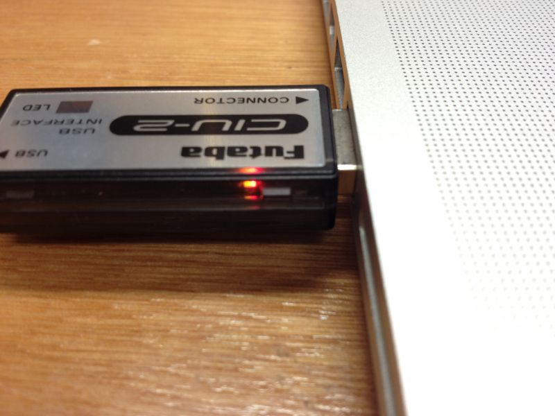 こんなかんじで接続。書込み中はLEDがオレンジで点滅します。