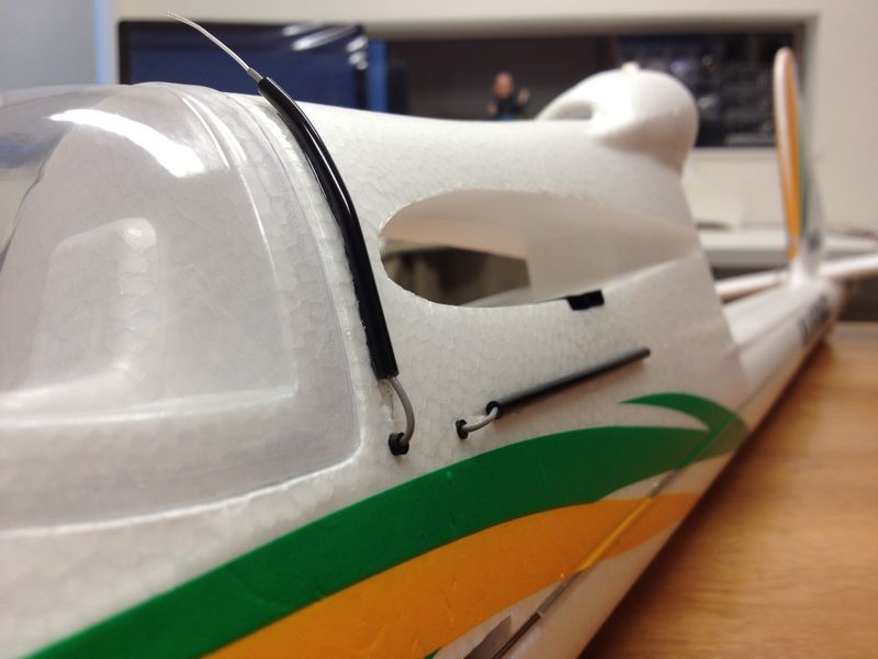 どこに積もうか考えに考えた末、胴体内側上部に逆さまに貼り付けました。アンテナは胴体をぶちぬいて2本出し、直交するように処理。胴体部分のアールを作るのがなかなか難しかったです(^^;;