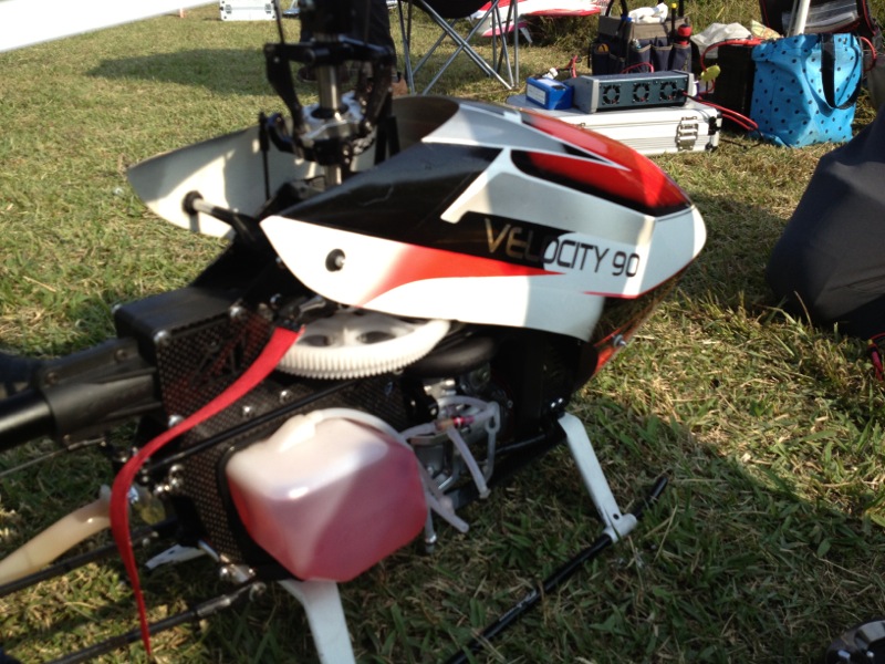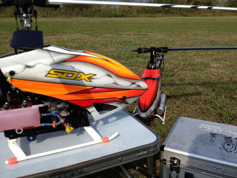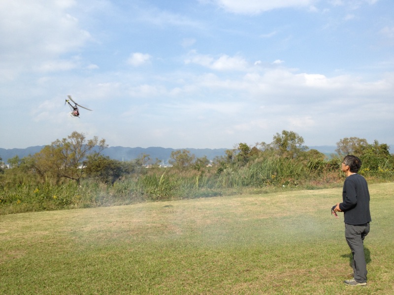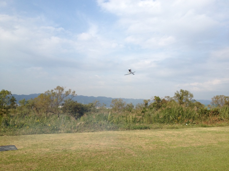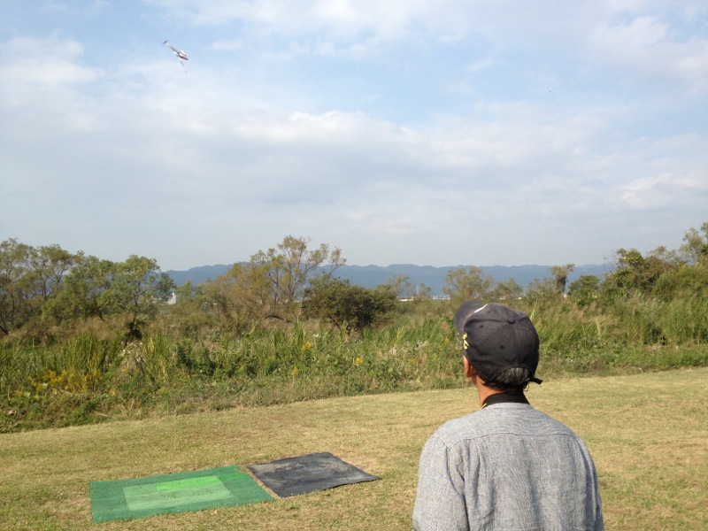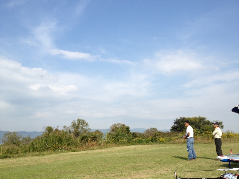 うまい具合に仕事が早く終わったので飛行場に。秋晴れで穏やかな陽気。初号機2F・弐号機1Fを飛ばしました。ピルフリなんてまだまだですが、最近は止めフリップに凝ってます(^^;; 上手な人達の演技はなんせ【トメ】がうまい。昔から思ってました。ピッチの使い方だと思うのですが、ダラ〜ンと流れて止まるのではなく、ピシっと止めたり切り返すなど【切れ】があります。ちょっとずつ精進中ですがなかなかうまくはいきません。K2さんに【背面から起こすときにピルエットしてみたら?】と言われビビりながらもやってみたところ意外にちゃんとできました\(^o^)/ 調子に乗って逆ピルエットを打ったらあわや墜落かと思うシーンもありましたが…(^^;; 飛行機組は競技会に向けての練習。いいお天気なので練習もはかどったようです。さて、そんななかゲストがお二人。うち一名が【VELOCITY90】を持参。YS120エンジン搭載です。ちょっと飛ばしてもらいましたが、かっこいい〜♪ 音もOSエンジンとは違う感じで大きかったです。まだ30F程度らしいのでニードルはちょっと甘目なのかな? 手持ちの回転計では1950rpm前後で飛ばしているようでした。 頑張って練習しないと(^^)/