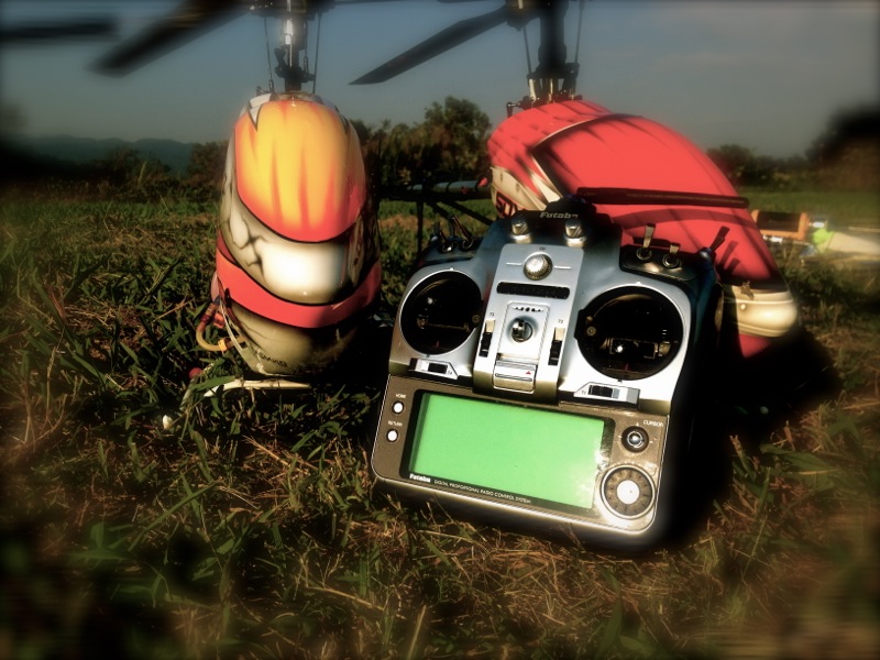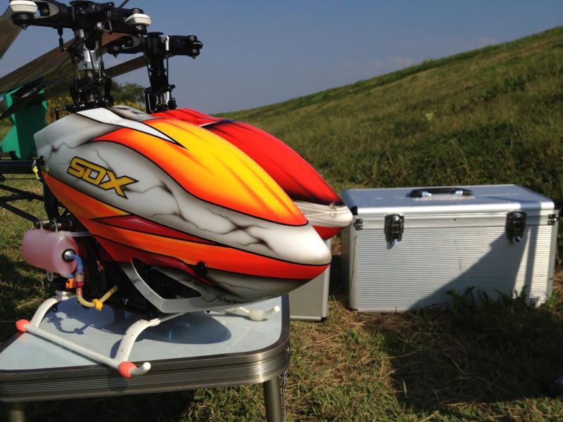 あまりにいいお天気だったので、点々とした仕事を早めに切り上げ飛行場へ。昨日よりも風が穏やかで暑いくらいです。 まずは弐号機から。昨日机上でピッチを合わせたので良い感じのトラッキング。が、アイドルアップに入れると微妙に振動が出てます。マスとかスピンドルか…いずれにせよ交換したほうがよさそうですね。やはり地球には勝てませんでしたか…。途中、上空で何かがポロリと落ちたのが見えたのですぐにおろして点検したところHIROBOのシリコンエキゾーストパイプがなくなっていました。以前からクラックが入っていたのでそろそろ寿命かなぁ、とは思っていましたが本日ご臨終です。 次は初号機。620mmローターは弐号機につけてしまったので以前の600mmカーボンに戻します。しかし