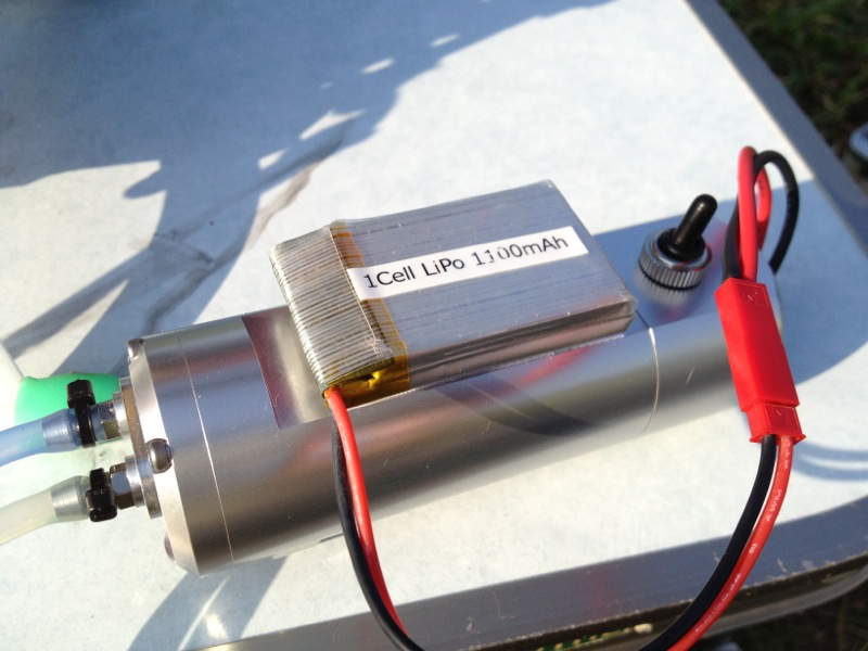 今日の給油は昨日届いた1100mAhの1S LiPoで行いました。NiCd4セルに比べれば速度は落ちますが必要十分な給油速度でした。LiPoについていたコネクタがJSTだったのでポンプ側もJSTに変更しました。それにしても1S LiPoの電圧ってどうやって計るんでしょう?たいていの電圧計は2Sからなんですよねぇ…。テスタを持って行ってはいますが、良いアイデアがあったら教えて下さいm(__)m そんなこんなで今日は落とすこともなく無事に終了。明日は雨だそうです。ボチボチ寒くなってくるんでしょうか?やだやだ…。