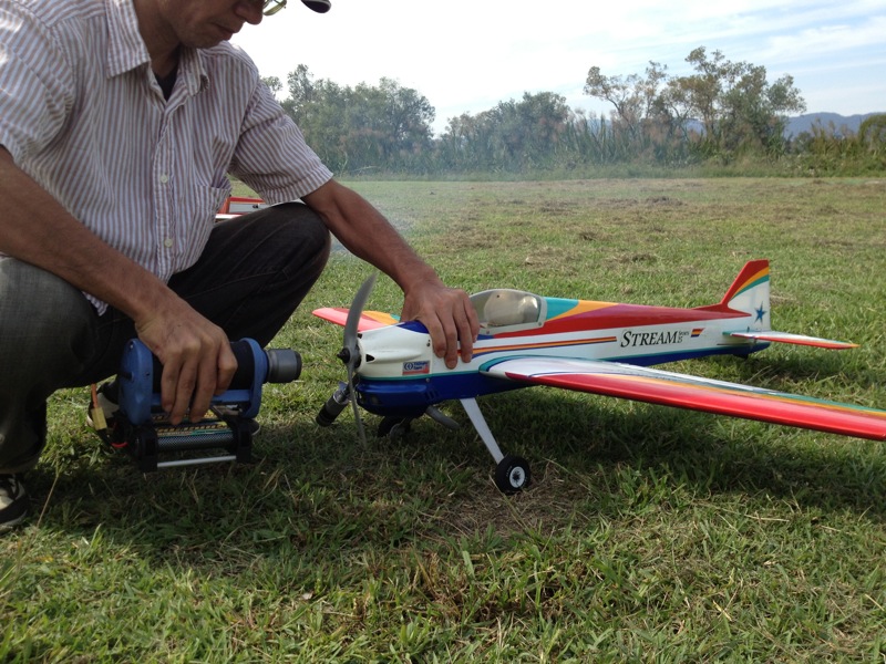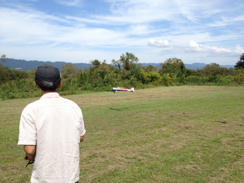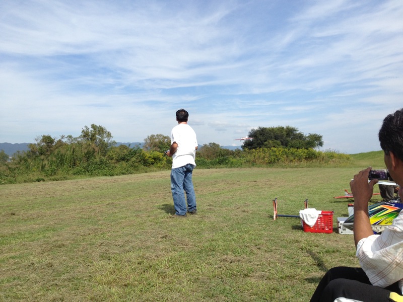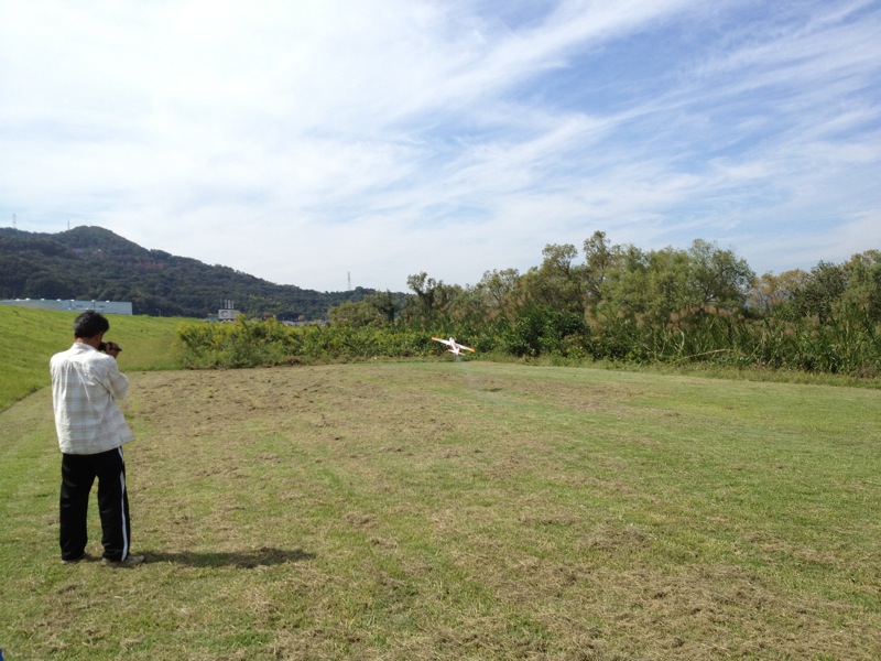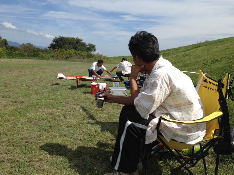 久々に祝日のお休みがとれたので飛行場へ。昨日と違ってT口さん、JYALAさん、K2さんと僕の4人だけ。まったり飛ばしました。 T口さんは珍しくGP機を登板、140クラスのOSエンジンは自作ベンチ台を持ち込みアイドル調整などをされていました。K2さんは腰痛悪化とのことで飛行機のみ。昨日と違って風があまりないので飛ばしやすかったと思います。上空ではサーマルを捕まえたらしくトンビも10羽以上が旋回していました。JYALAさんは800Eでいつものようにローターをうならせながらの3D。途中、サービスフライトでローターを地面に接触させるくらいの背面も見せていただきました(^^)/