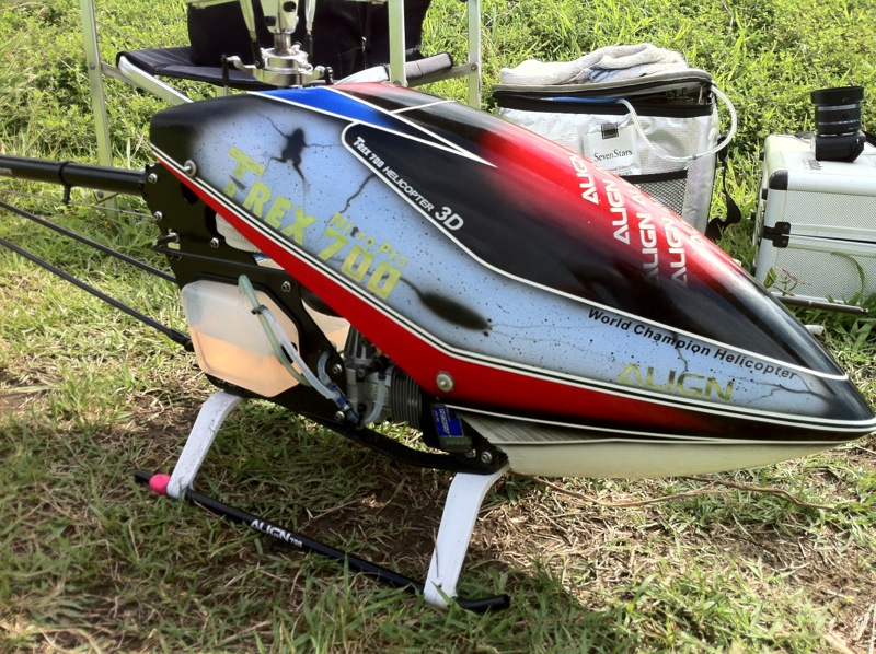 朝から雨、昼前には止み飛行場へ赴いたところK2さんがフライト中。誰もいなかったようですが、JYALAさんが早々に撤退したらしく、飛行場は僕と二人のみ。途中、N井さんがチャリンコで偵察に。 今日は新調したFusunoキャノピーで初号機1F、弐号機2F。弐号機はジャイロとの干渉が気になっていましたが、特に問題なかったです(^^)/ 蛍光ピンクとオレンジのキャビンは曇り空でも結構見やすく良い感じでした。弐号機はオートロで着地寸前に背の高い草に引っかかるなどのアクシデントもありましたが、まぁ無事に終了。空撮も試みましたがバッテリ切れで結局一枚も撮れていませんでした(涙) 来週は…出張帰りなんだよなぁ…大丈夫かな?