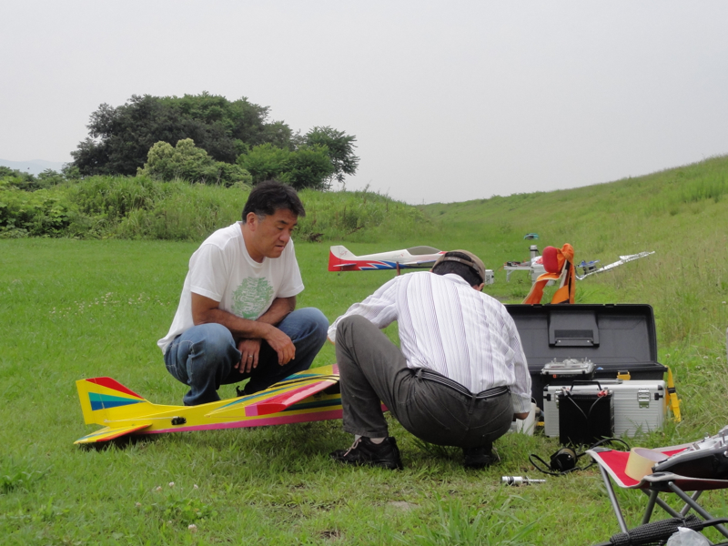 午後から雨の予報。さっさと出かけて飛ばします。今日は草刈り予定だったのですが急遽中止となった模様。伸び放題の草に飛行機組は苦戦中…。今日は初号機・弐号機をまったりフライト。曇り空なので機体姿勢がわかりません。おまけに久々のヘリなので打ちミスも数回。幸い墜落には至らず無事帰還。 先日完成した新規Quadも飛行場では初のロールアウト。飛ばし始めてしばらくすると若干ドリフトする感じですが、まぁ何とかなりそうです。hatayanさんからは【あまり機体を遠くへ遣るな】とのダメ出し。ええ、もちろんわかってます(^^;; …反省…。 お昼前には雨がパラパラ…。皆さん撤収となり、僕も一時撤退。職場でチョチョッと所要を済ませると雨もすっかりやんだので再び飛行場へ。日曜日ですが完全貸切状態\(^o^)/ おまけに雨降り前の無風状態です。残った燃料でひたすらピルエットし続けました。さすがに10分以上ピルエットしていると、もう何がなんだかわからなくなり、ふと我に返ると思わず打ち込んでしまいそうになる始末…。ゴルフのパットみたいなものですかね。精神修養が足りないようです…orz