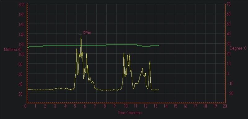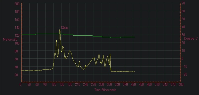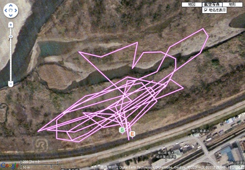 ホビキンの高度計を設置した弐号機で2F。GPSロガーも積んでみました。最高速度90km/H前後、最高高度130m弱。精度は???ですがこんなものでしょうか。ボチボチヘリも再開しないと。