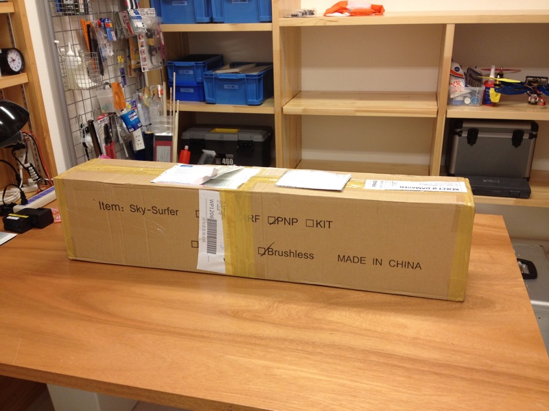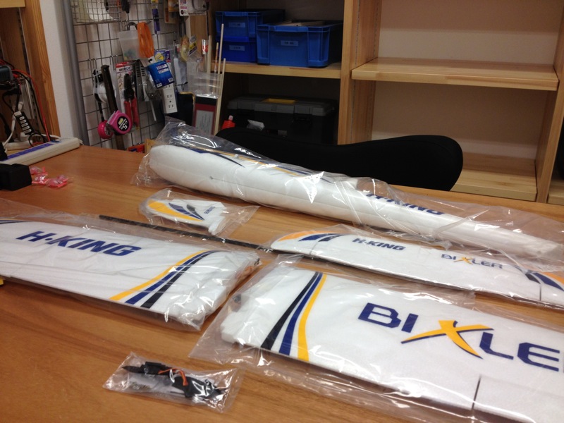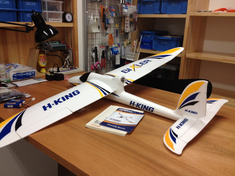 先日来悪戦苦闘中のQuadはどうにもジャイロの設定がうまく行かず、海外のフォーラムを渡り歩いていましたが同じようなトラブルの方は結構いるようで、FWとの相性がよろしくない、みたいな感じで半分放置状態。とりあえず新規Quadの制作は一旦ペンディングし、新たに固定翼機を導入することにしました。 いずれは飛行機も…と思っていたのですが飛ばすならやっぱりエンジン機かなぁ、と。ただ、今回は最終的に空撮を目的としたいので滑空しやすそうなモーターグライダーに決定。通称モグラ、というそうですが(K2さんに教えてもらいました)なんせ初の固定翼機。組み立て方はもちろん設定もトンチンカンですが、はたしてどうなることやら…。 購入した機体はBixler EPO 1400mm ARFです。ARF以外にもKITやRTFなどいろいろあるようですが、とりあえず受信機とバッテリー、アンプさえ用意すればいいARFにしました。お値段おおよそ4200円。国内だとアンプ付きで11000円くらいで売っているようです。 説明書は一応付いているんですが…どう見ても参考になりそうもありません。写真が小さく、おまけにピンぼけ。世界各地の先人たちが色々と製作のノウハウを提供してくれているのでそちらを参考にしようかと思ってます。あとはK2さん頼み(^^;;