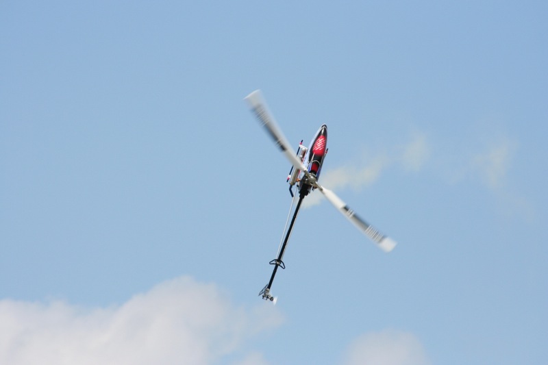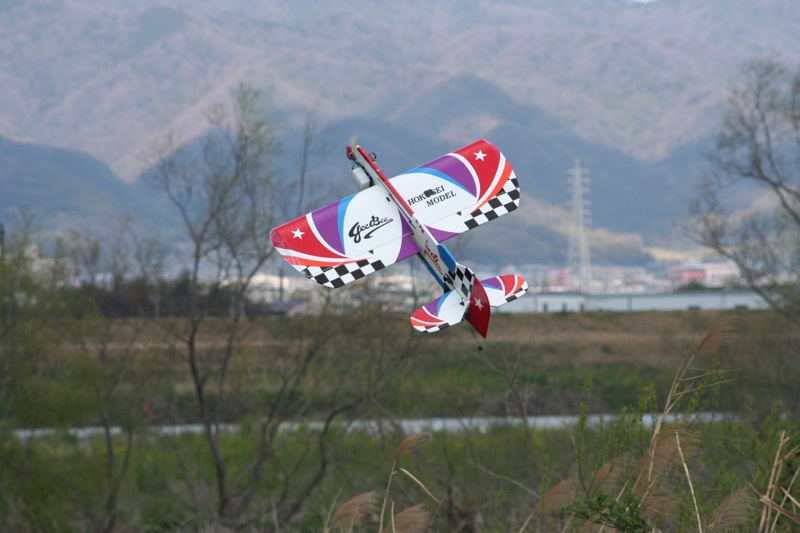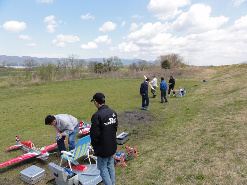 今日から4月。新年度初っ端は日曜日です。お天気も良いので飛行場へ。風は結構強めで10時頃には6-8m/sec程度の西風です。JYALAさん、K2さん、hatayanさん、W林さん、T口さん、Y2さん、I店主、そして寄り合いで1Fして帰ってしまったN井さんの合計9名。みんな思い思いに飛ばしてました(^^)/ さて、FBL化したSDX初号機は1F目のラスト、オートロで失敗しスキッド破損…。いける!と思ったんですが予想以上に風が強く近づけられませんでした。フレアも十分だったと思うしクッションの効いたブッシュだったので軽傷ですみました。ホッ…ε-(´∀`*) 弐号機も1F。こちらはエンジンも好調、慣れているので結構色々楽しめました。オートロも無事に成功させたので背面オートロにも挑戦。まぁまぁの感じで無事に着陸させられました。久々の背面オートロ成功はちょっと嬉しい(^o^) あと、W林さんにCGY750の設定をいろいろ教えてもらいました。舵の効き具合はアンプ側で調整するがよろし、とのお達しでした。取説にも【送信機のD/Rは100%で】とあります(^^;; JYALAさん、K2さんと僕以外は皆飛行機だったのですが、W林さんのGeeBeeは久々のフライトでしたが魅せてくれました。前日のシミュレータの効果が出ていたようです(^^)/ JYALAさんの700Eはヘッド部分がDFC?化されていてちょっとびっくり。スワッシュにピボット2つだけでコントロールしています。頑丈そうですね。
