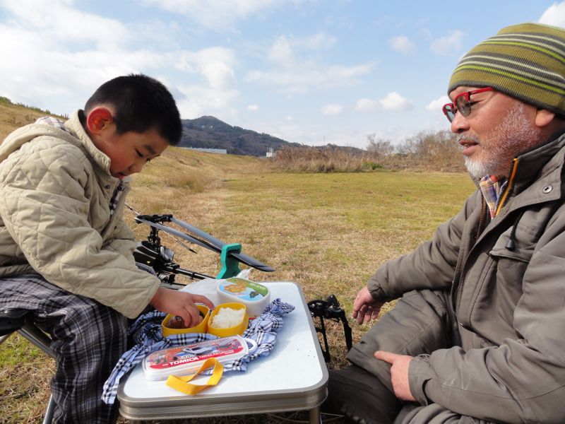 寒いながらも朝から快晴。今日は猪汁会だったので飛行場へ行く準備をしていたのですが、なぜか子守を仰せつかり出発遅れ。ついた頃には既に出来上がり直前という状態。でも、美味しくいただきました。準備はおろか後片付けもせず申し訳なかったですm(__)m フライトは初号機を1Fのみ。エンジンがなかなかかからず、悪戦苦闘すること数十分。逆止弁がうまく働いていなかったようで分解清掃したところ無事に復活。寒いし北風でゴーグルを忘れてきたので目がショボショボ。落とさないようにしてなんとか無事終了しました。