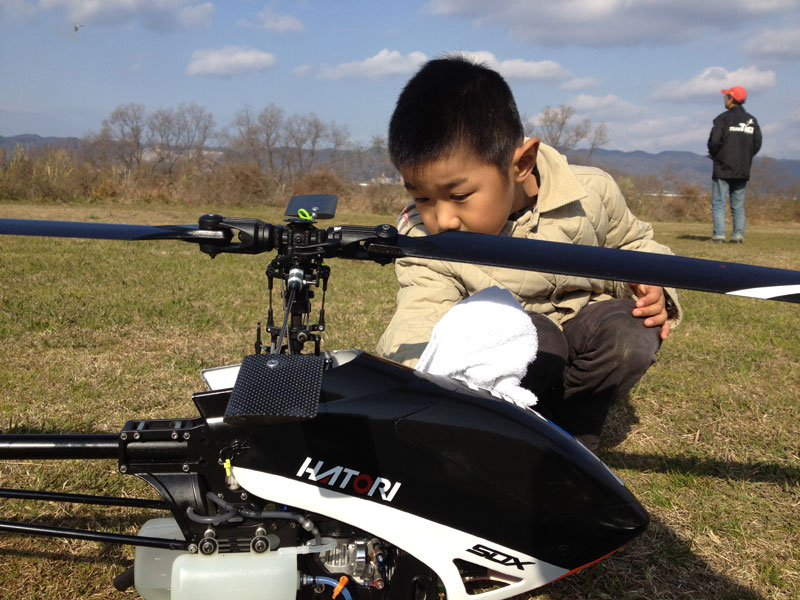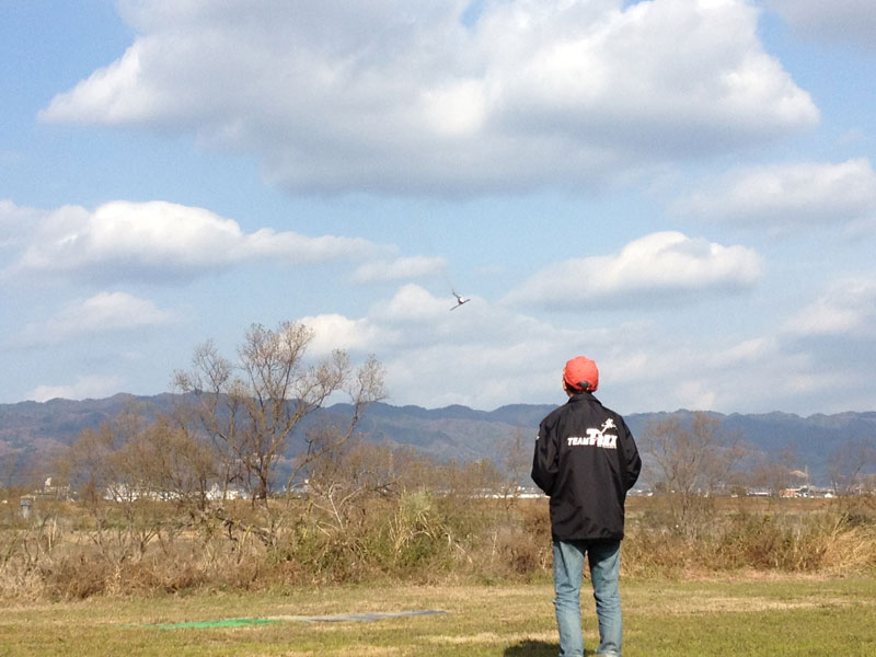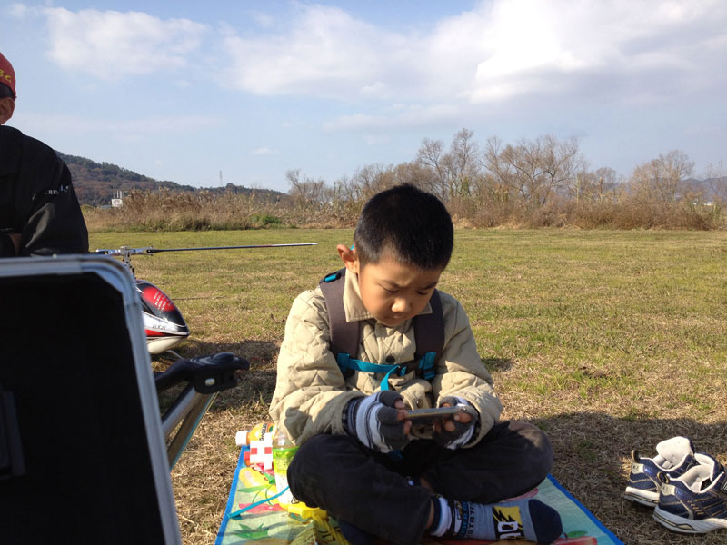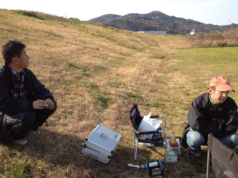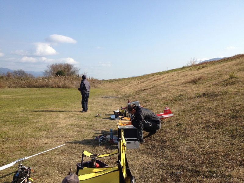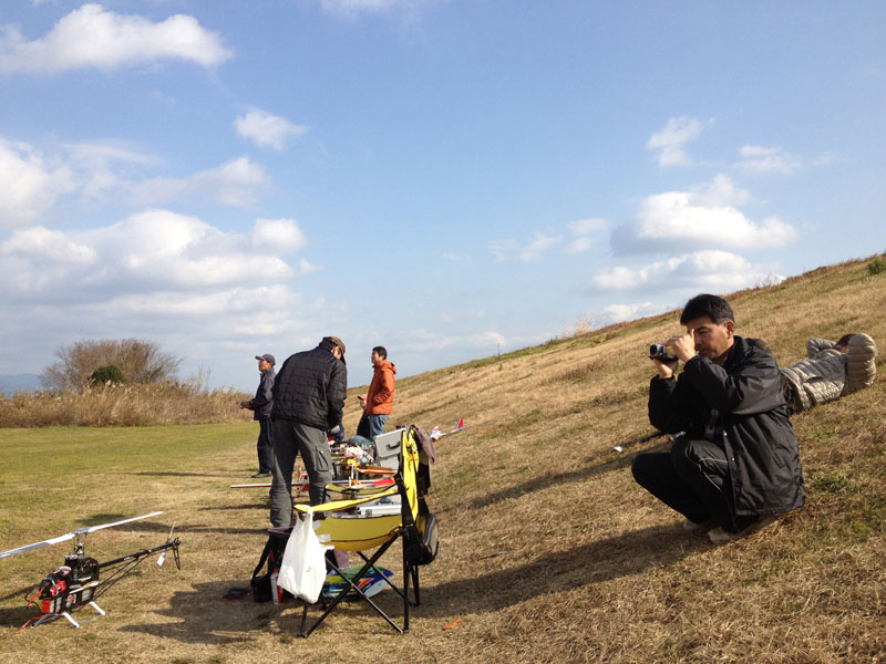 さて、正月休み最終日の今日、2012年初のフライトに行って来ました。今日は私設応援団付き(笑) 天気は快晴で、風もあまりなく暖かな日でした。JYALAさん、Yさんに続いて到着しましたが、その後はK2さんやhatayanさん、W林さん、SGさん、ハーレーに乗ってお昼寝しにきたKmさんなども来られ賑やかでした。 昨年コケた初号機を修理し、ローターはストック分のInfinity 620mmカーボンで初フライト。ところがトラブル続きでした…(;_;)