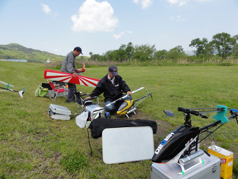 昨晩は結婚記念日だというのに職場の飲み会。終了時刻は早かったもののペースが速かったのか完全に出来上がった状態で記憶もぶっ飛び、気づいたら職場のソファで寝てました。起きたら一気に吐き気を催し反吐状態。掃除が大変でした…(^^;; そんな二日酔いを一気に冷ましてくれるかのように今日は好天!フライトしてきました。昨日に比べ風も弱く、いい感じです(^^)/ 初号機3F、弐号機3Fのトータル6F。いつも使っている燃料が底を付いたので、クロッツのキャンペーン特価で買ったプレミアム25-20HVを投入。去 年はニードル調整を誤りエンジンをたてつづけに2台も焼いたので今回は慎重です(笑) 僕のレベルではあまり違いがわからないのですが、エンジンの粘りは 感じられます。まぁ、この燃料も使い切ったらいつものNASA15%へ戻すんですけどね…(^^;; K2さんは初っ端からオートロ失敗、現場補修で再起。hatayanさ んはDF付きの電動機でいい感じに飛んでいたものの着陸に失敗し機首がポロリ。W林さんは背面中にテールケースがねじれて高速ピルエット状態に。アイレベ ルでしたが果敢にもHOLDに入れ、背面のまま着陸。…いろいろトラブルはありましたが、大破などはなく無事一日を終えました。