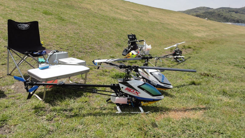 朝からいいお天気だったので飛行場へ。代休取得のJYALAさんがLiPo充電中でした。今日は初号機・弐号機・430Xの3機態勢です(^^)/ ・初号機
