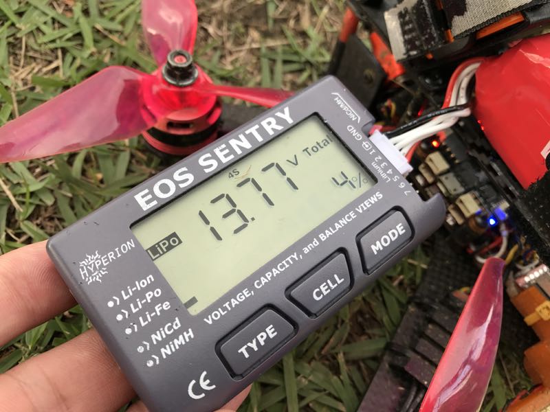 B号機のフライトはVANT/75C/1300mAhで挑みましたが、先日K2さんに譲っていただいたハイピッチペラを気持ちよく使っていたところ、急激な電圧低下が発生。3分弱で数%しか残なく、HQの5x4x3に変更したところ通常に戻りました。前回はそんな感じはなかったように思うんですが、どうもこのタイプのペラは電費に厳しいのかもしれません。まぁ、バッテリの個体差ということもあるかもしれませんが…(^^;;…3分持ちませんでした…飛ばし方かなぁ…orz