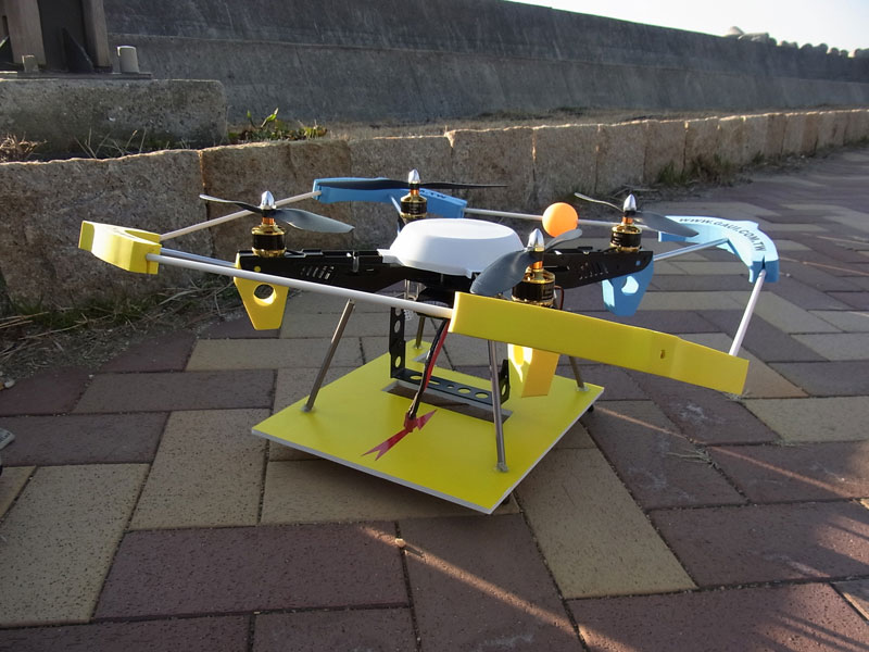 平日はなかなか飛ばしに行けないのですが、なんとか頑張って仕事帰りに330Xを飛ばしに行きました。飛行場は遠いので家から車で10分ほどの港です。海に落とすわけにはいかないのでロケーションは慎重に選びましたが、やはり海が近いなぁ…と。海のすぐそばなので微風はあるものの、お天気は上々です。昨日プチ改造したので視認性も確認します。 まずはカメラ無しで飛ばします。クルーズモードならなかなかいい感じで飛んでくれるのでカメラを積んで空撮。昨日よりはマシかな?と思いますが、テトラポッドに取り付けたカラーボードが吹き降ろしの風を邪魔するのか時々姿勢制御が怪しげに…。なんとか動画と静止画を撮りましたが、カラーボードに関しては面積をいっそう減じないといけないようです。視認性はいい感じだったので今後の課題に。ちなみにカメラ搭載後の静止画撮影で軽い突風か、姿勢制御できなくなり高度20mくらいからでしょうか、あっという間に墜落…。破損はなかったのですぐに飛ばせましたが腕と機会のせめぎ合いというのは以外に難しいようです…。ジャイロ感度をもっと下げてみようかな(^^;;