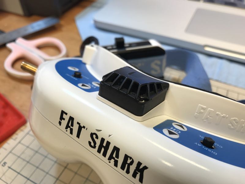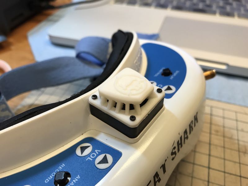 仕方ないので家で工作。DomV3のファンシュラウドは脆いのか、何かにぶつけていなくてもネジ穴部が割れてきていました。3Dプリンタでシュラウドを作り直して完成。RRのロゴ付きです(^^♪こんな感じで割れてきます。