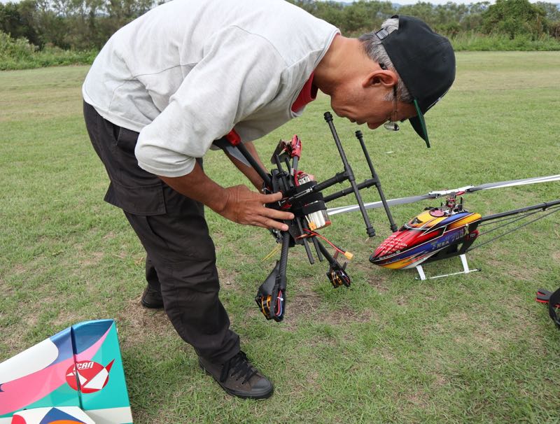 JYALAさんはついに650サイズのクアッドを持ち込みメイデンフライト。浮上までは良かったのですが、その後謎の不時着。全部のモーターがシャットダウンするのでFCの設定か何かだと思うのですが…次回に期待です(^^♪