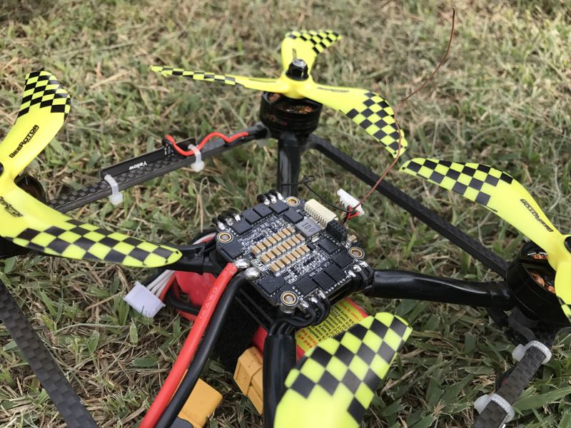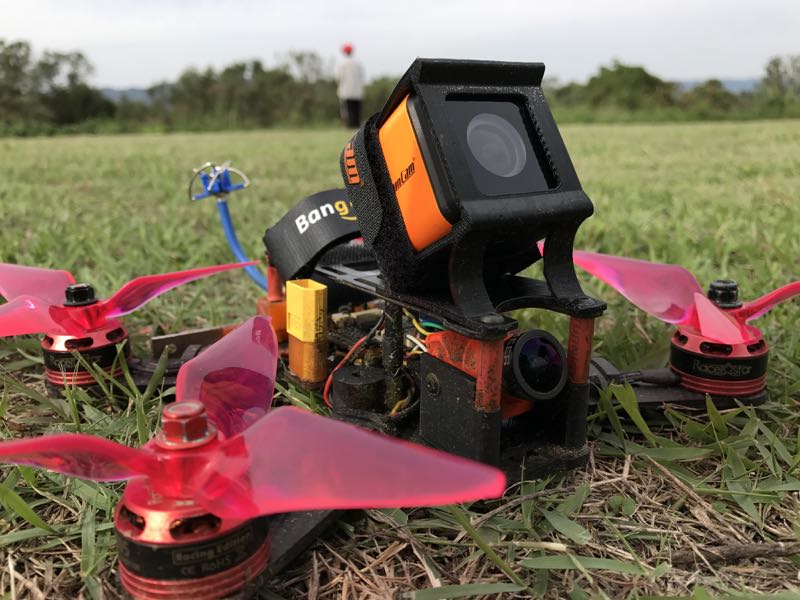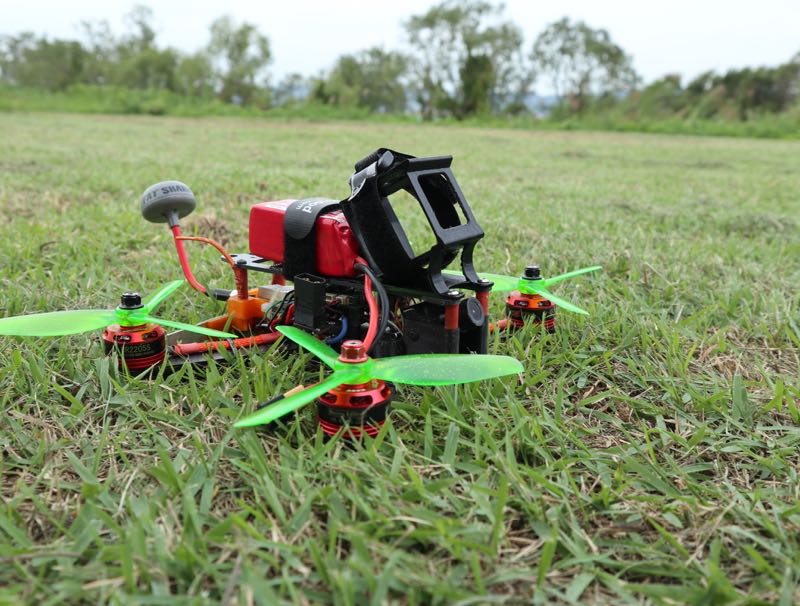 K2さんは座布団型の新機種を持ち込み。最近流行りの細いフレームで井桁状に組んであります。主にスピード重視の機体だと思いますが、カメラはRunCamSplitを積み、モーターも2450KVなどなどなかなかに高級志向でした。ゴーグル越しに映像を見ましたがかなり美しいです。レイテンシとバイブレーションだけが気になりますが、V2が出るようなので一つ購入を検討しますか(^^;;K2さんの新作機はちゅど〜んして首チョンパ…((((;゚Д゚))))ガクガクブルブル