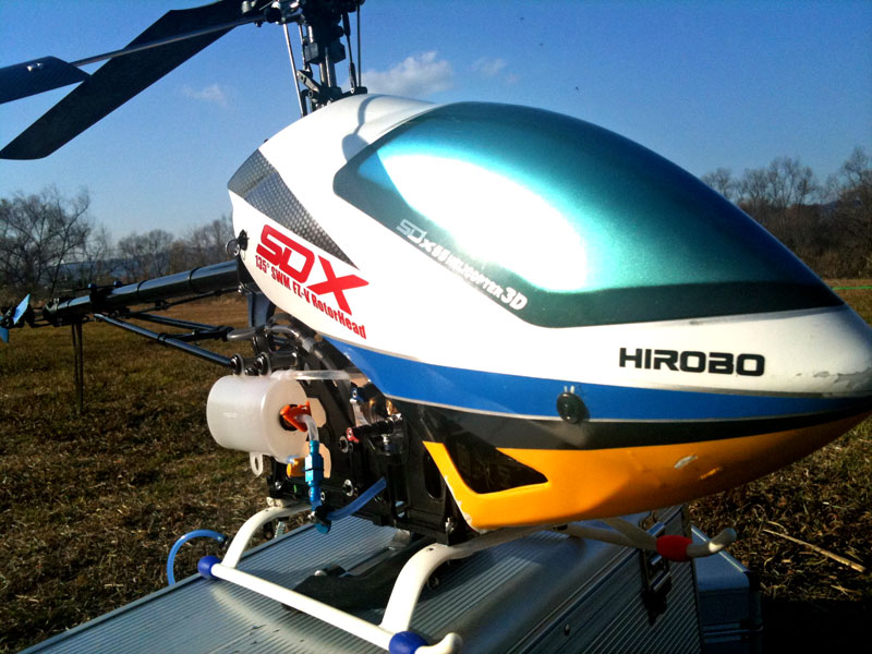 先日の墜落で弐号機はお休み。今日は初号機のみ持って仕事帰りに飛行場へ。いいお天気でしたが誰もいません。 初号機の55HZ-Rエンジンは調子よく、ループなどの上昇もいい感じです。風が全くといっていいほど吹いていなかったのでとても暖かく感じられ、青空をバックに機体も見やすくいい感じです。しかしループは無意識のうちにかなり慎重になっていました。下り後半はビビり