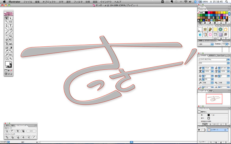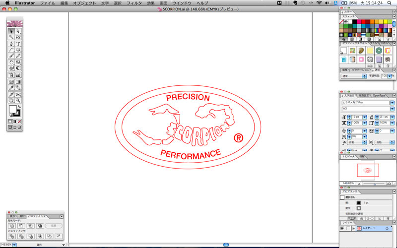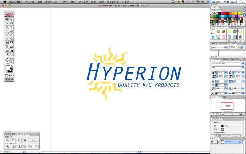 あとはHYPERION。太陽っぽいマークは上下ほぼ対象となっているようで、片方だけをトレースして複製。あまり小さくしてしまうと文字の部分が潰れかねないので、実際の大きさは今後の検討課題に。敏ボーさん、今しばらくお待ち下さいね。