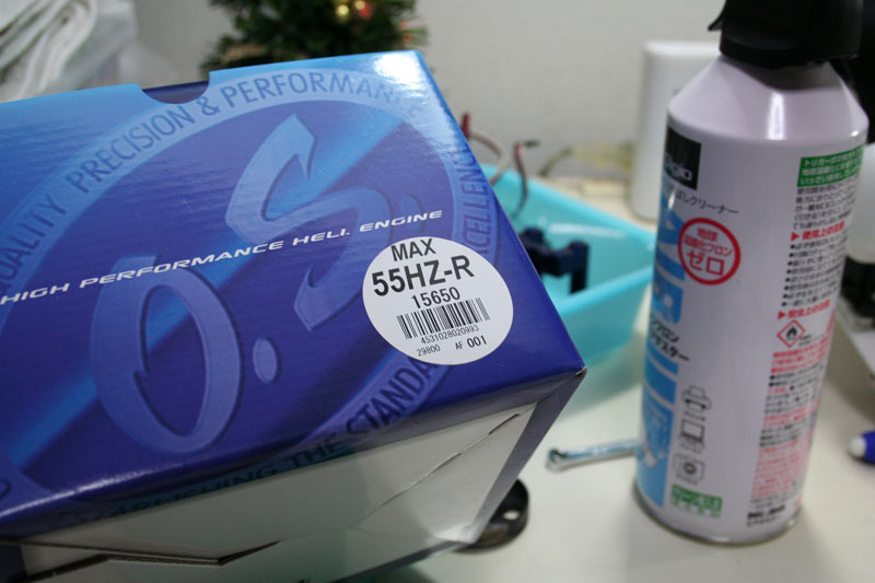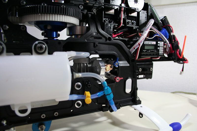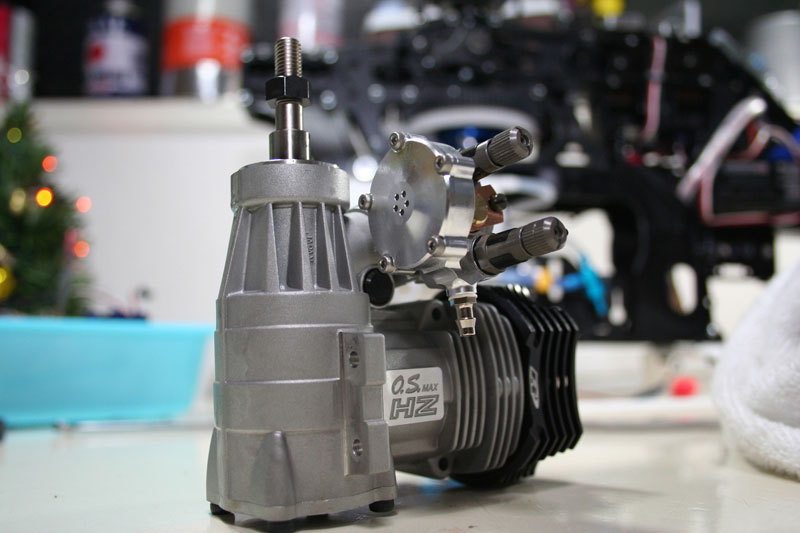 昨日の腰砕け墜落後、急遽55HZ-R換装モードに。修理も兼ねていますので、すったもんだしながら朝の5時までかかりました。55HZ-RはYSエンジンと同様、ポンプ式のシステムです。レギュレータのサイズがかなり大きく、搭載は難渋しました