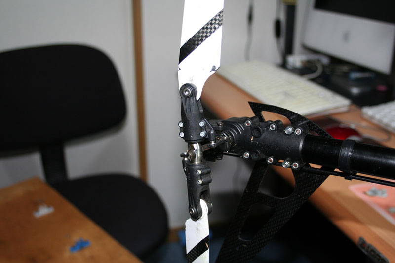 一気にやる気を無くし、帰宅。部品は全部在庫がありそうなので早速補修。なんとか形になりました。スピンドルは交換しましたが、マストは微妙。飛ばしてみてダメそうなら現場で交換することにします。ピッチその他の調整は明日に持ち越しです。