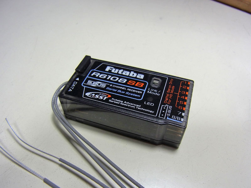 続いてR6108SBの取り付け。2.4GHz化に伴いチャンネルアサインが変更されています。①エルロン②エレベータ③ピッチ④ラダー⑤ジャイロ⑥スロットル⑦ガバナー⑧ガバナー2、となりました。8Chは電源Chとしているので実際には1~7を使うのですが、これだと機体捜索用ビーコンが使えません。そこでGY520の強みを生かし、S.BUS化に挑戦。1つのコネクタで複数機器をコントロールできるというFutabaの触れ込みです。2.4GHzも初めてなら、S.BUSも初めて。色々と試行錯誤しました。PR