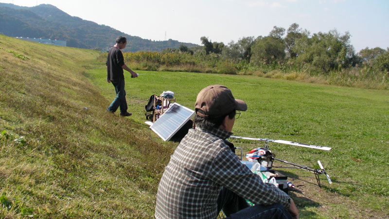 飛行場ではJYALAさん、Kさん、K2さんの3人。午前中にはhatayanさんがいたそうですが、撤収されたとの由。JYALAさんの700Eをみて、Kさんのカルマートを見て…K2さんは心折れたとのことで700Nのフライトはされず