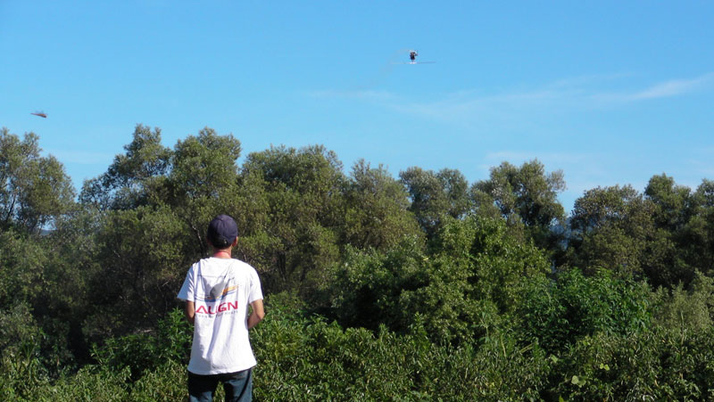 。T-REX700Nと450を持参。午後からはお仕事のようで早めに撤収されましたが、T-REX700Nは慣らしもボチボチ終え、フライトも本格的になってきました。馬力