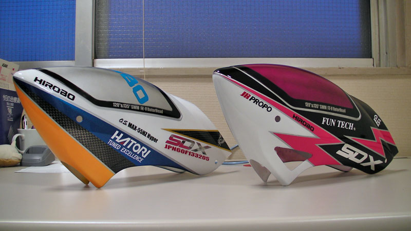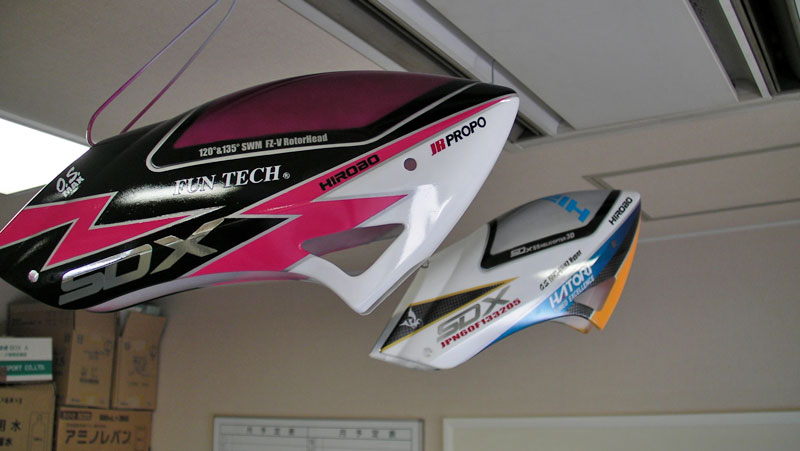 室内で塗装するわけにはいきませんので敢行。ついでにクリアが剥がれてきたALIGNのパドルも塗装しました。