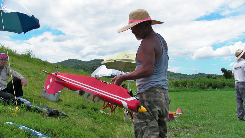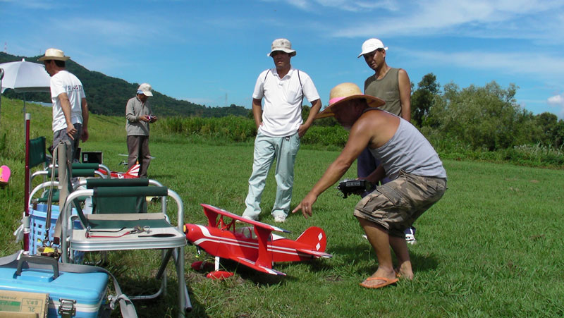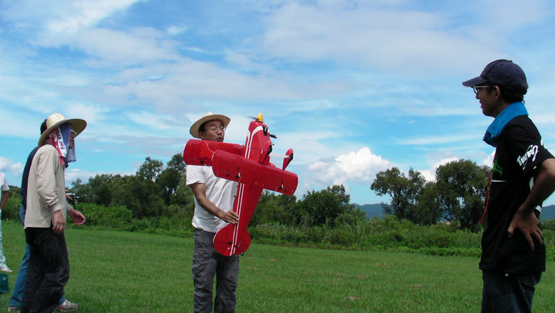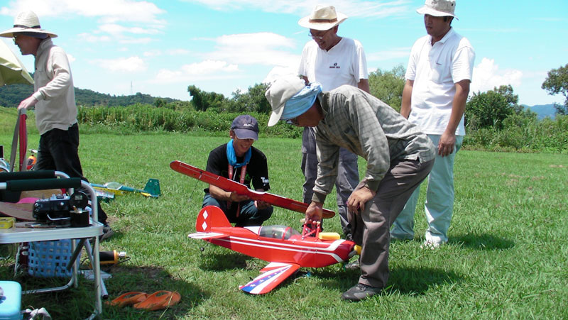 お盆前の休日、飛行場は朝から結構な賑わい。僕は午後から所用のため少し早めに出動。飛行場にはすでにJYALAさんが。早い!そうこうしているとK2さん、そして珍しくI店主が早出で登場